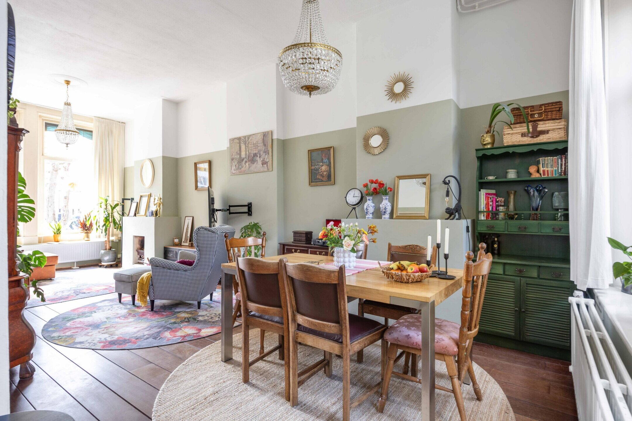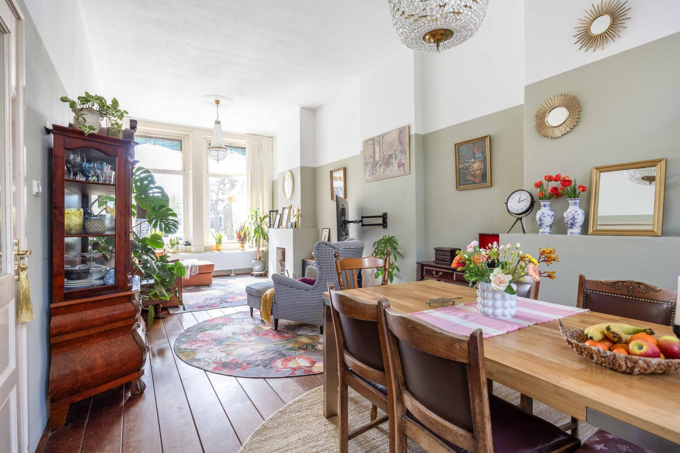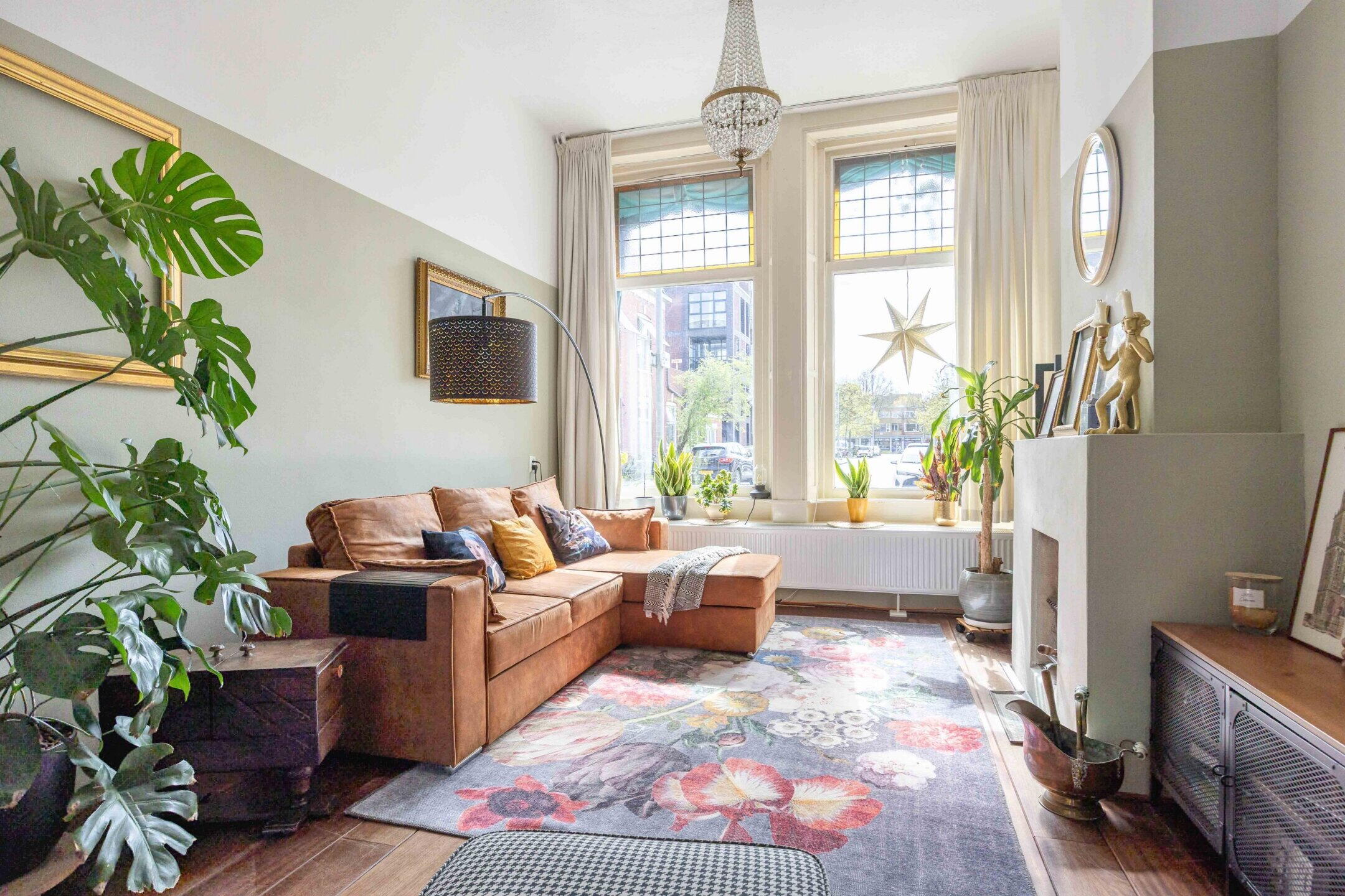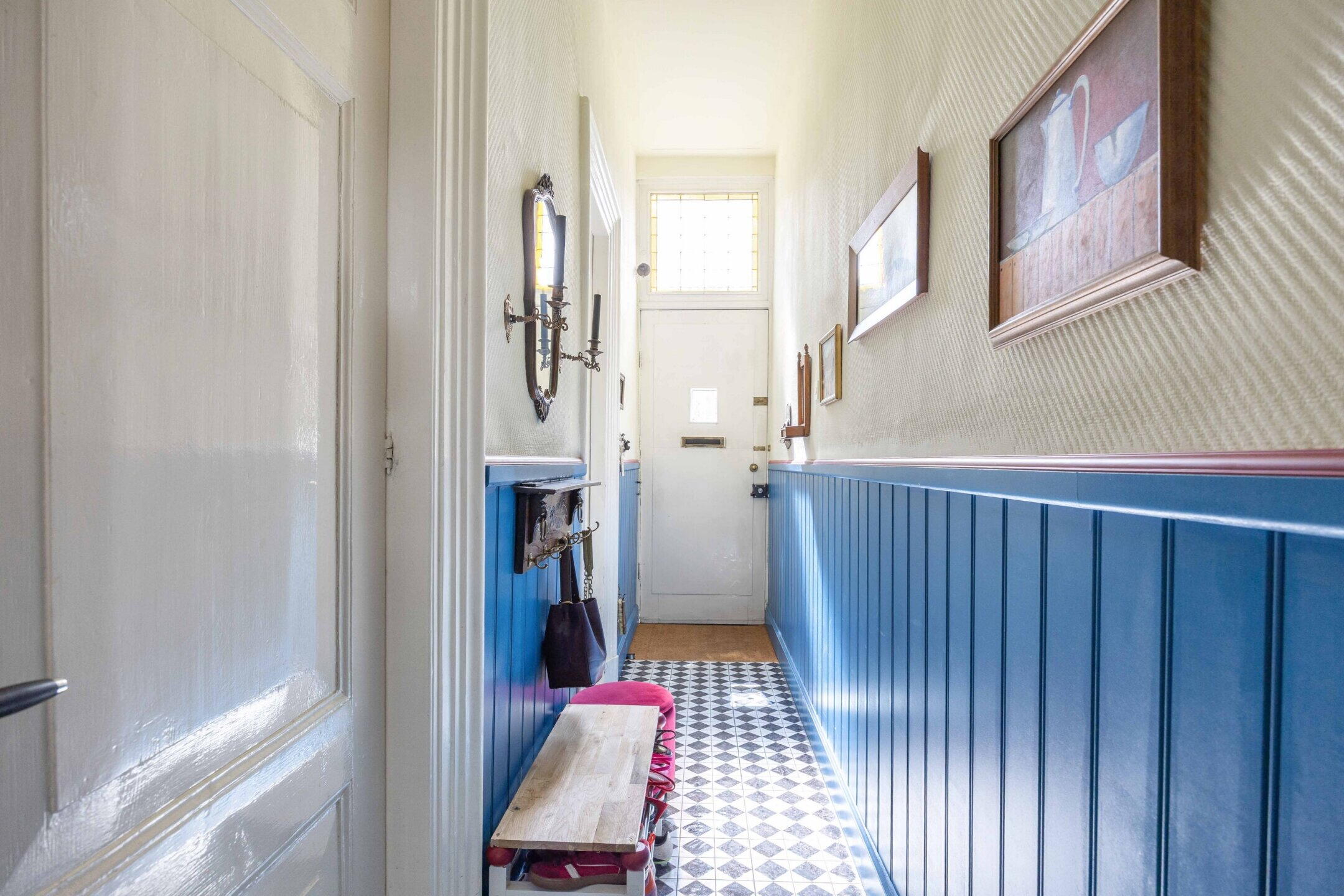 De woning beschikt over 103 m² woonoppervlak, verdeeld over twee woonlagen met in totaal vijf kamers, waarvan drie slaapkamers en de perfecte thuiswerkplek. De kleurrijke hal zet meteen de toon: speelse elementen, hoge plafonds, een nieuwe tegelvloer en lambrisering met knipoog naar het verleden en zorgvuldig bewaarde details.