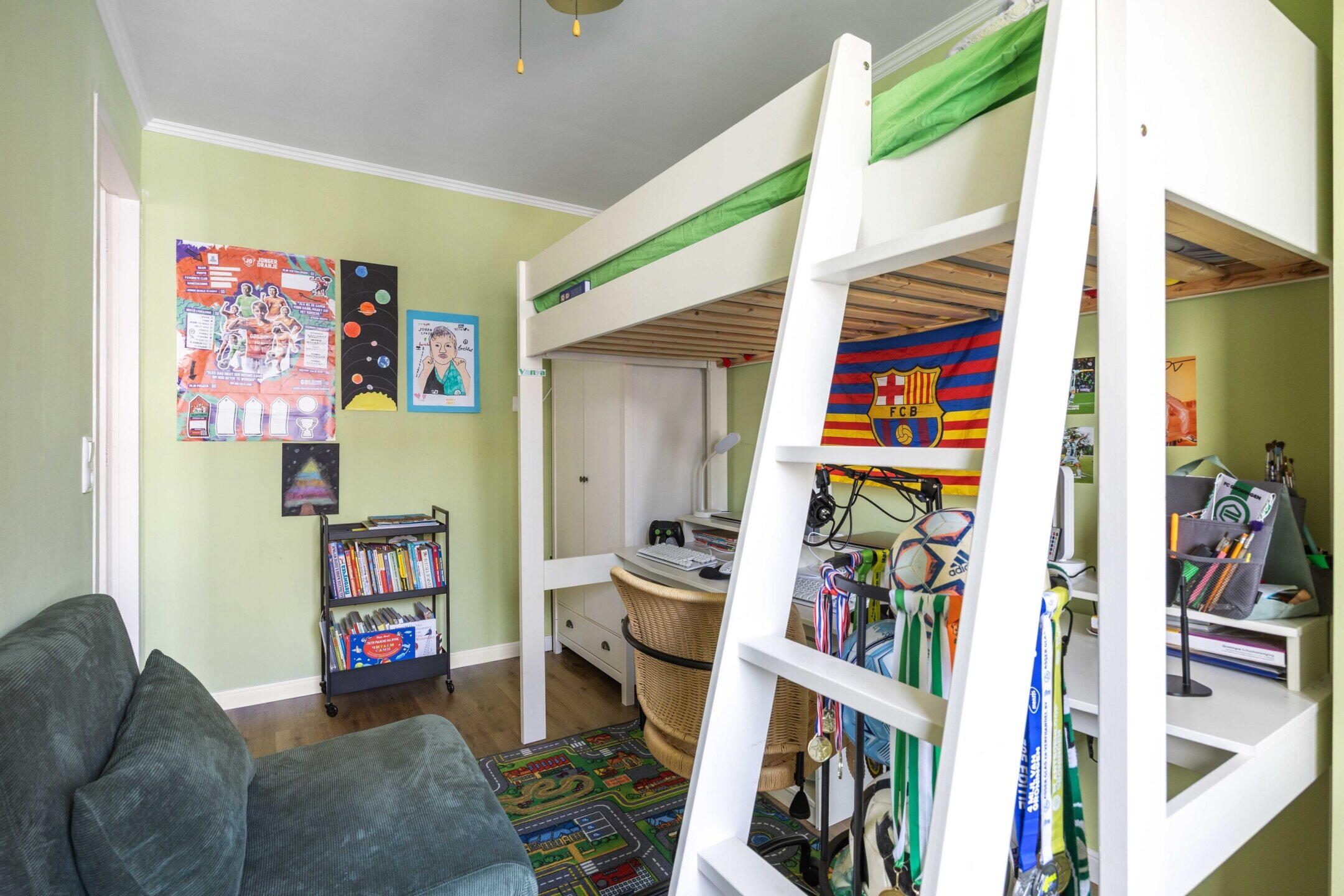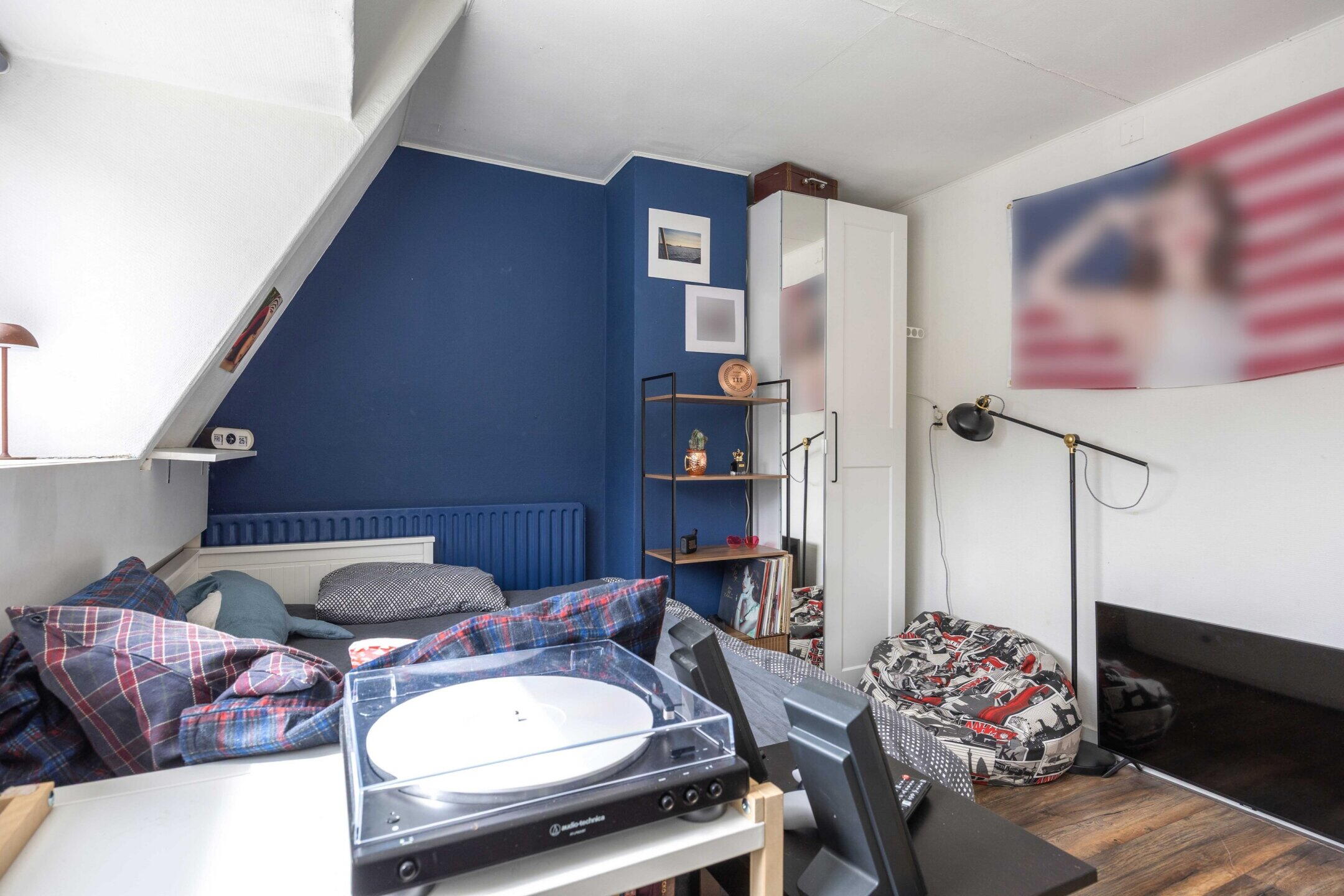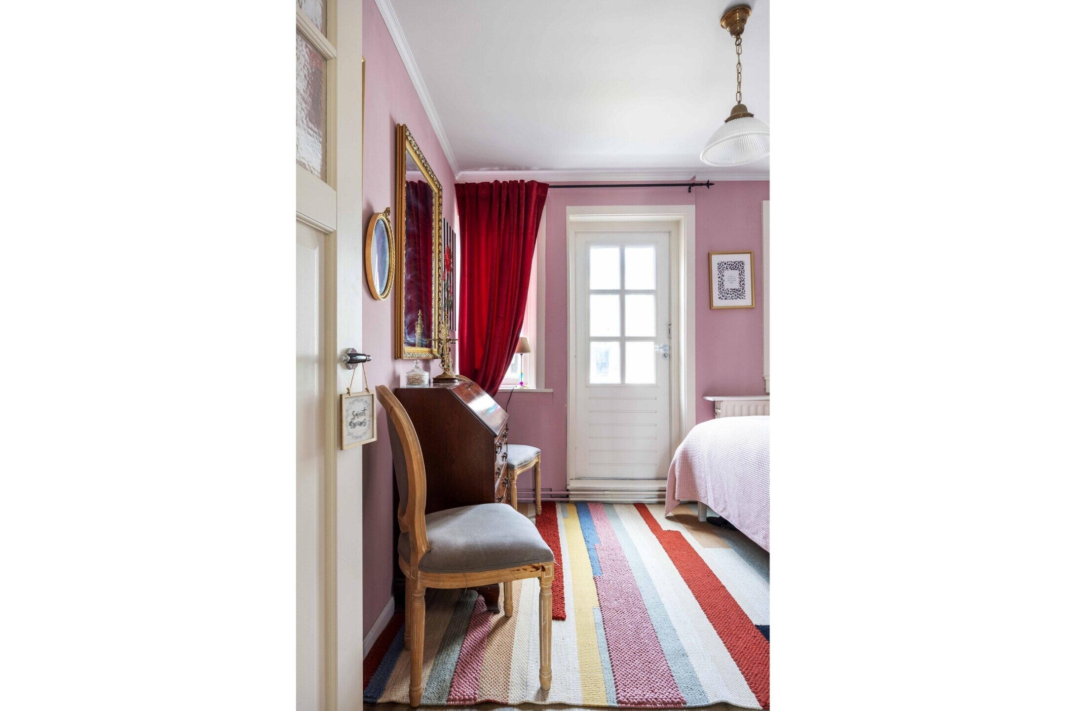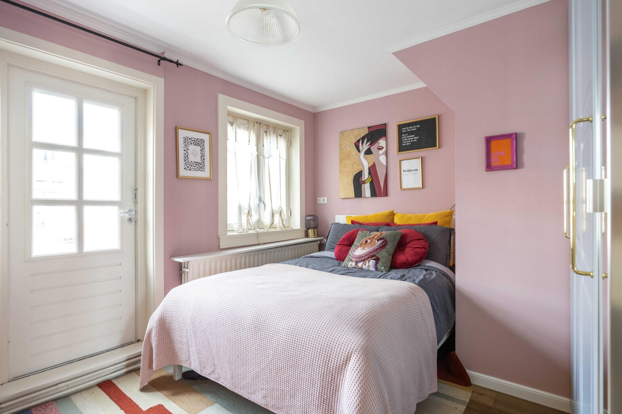 De woning beschikt over 103 m² woonoppervlak, verdeeld over twee woonlagen met in totaal vijf kamers, waarvan drie slaapkamers en de perfecte thuiswerkplek. De kleurrijke hal zet meteen de toon: speelse elementen, hoge plafonds, een nieuwe tegelvloer en lambrisering met knipoog naar het verleden en zorgvuldig bewaarde details.